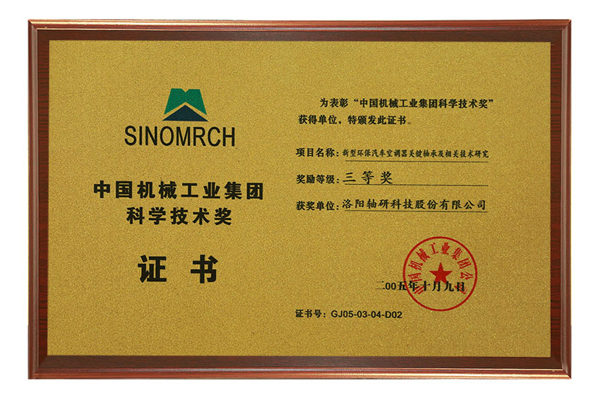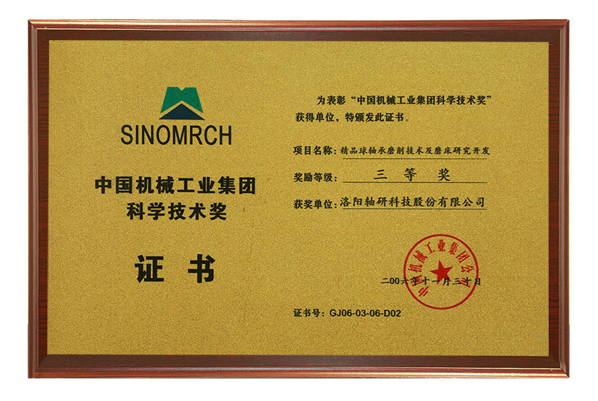 中国机械工业集团科学技术奖三等奖